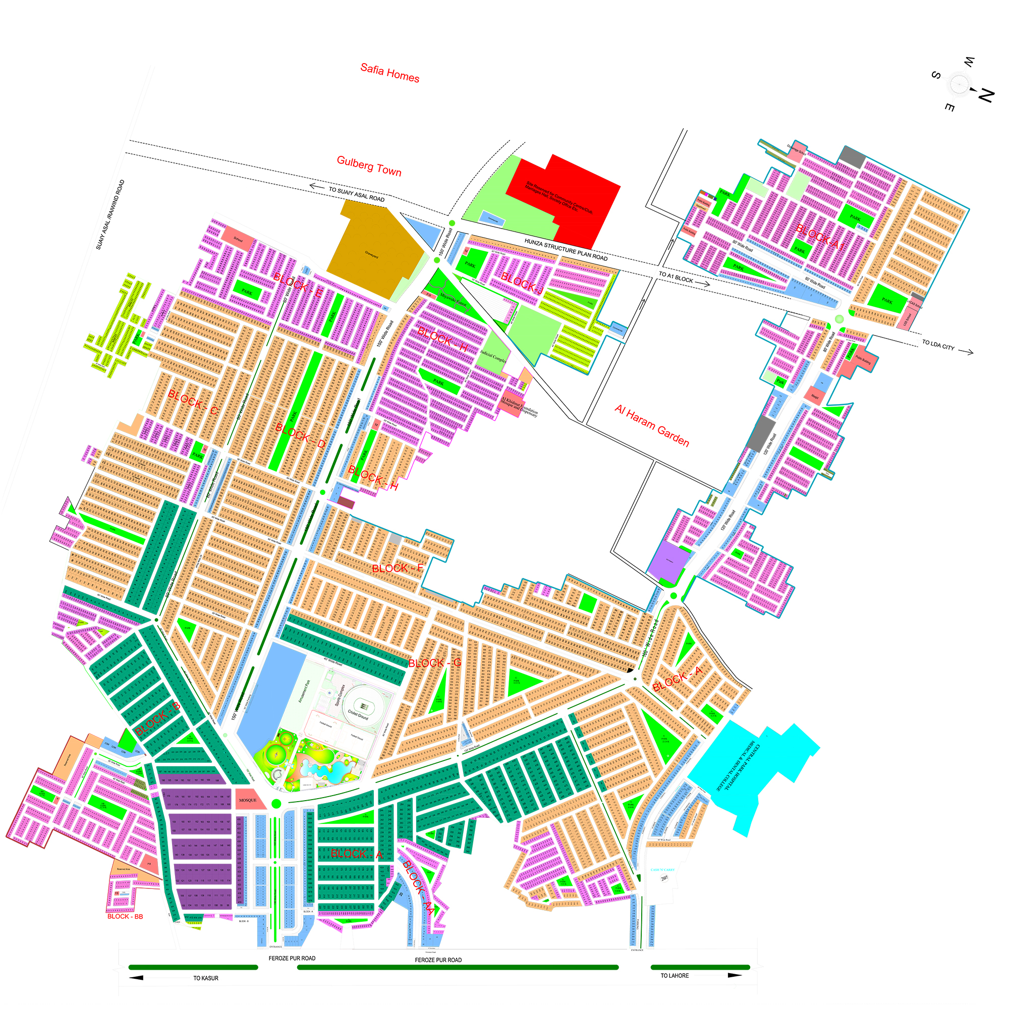 Central Park Housing Scheme enjoys a prime location on Ferozepur Road (Lahore–Kasur Road). It offers seamless connectivity to major routes and landmarks, including:
